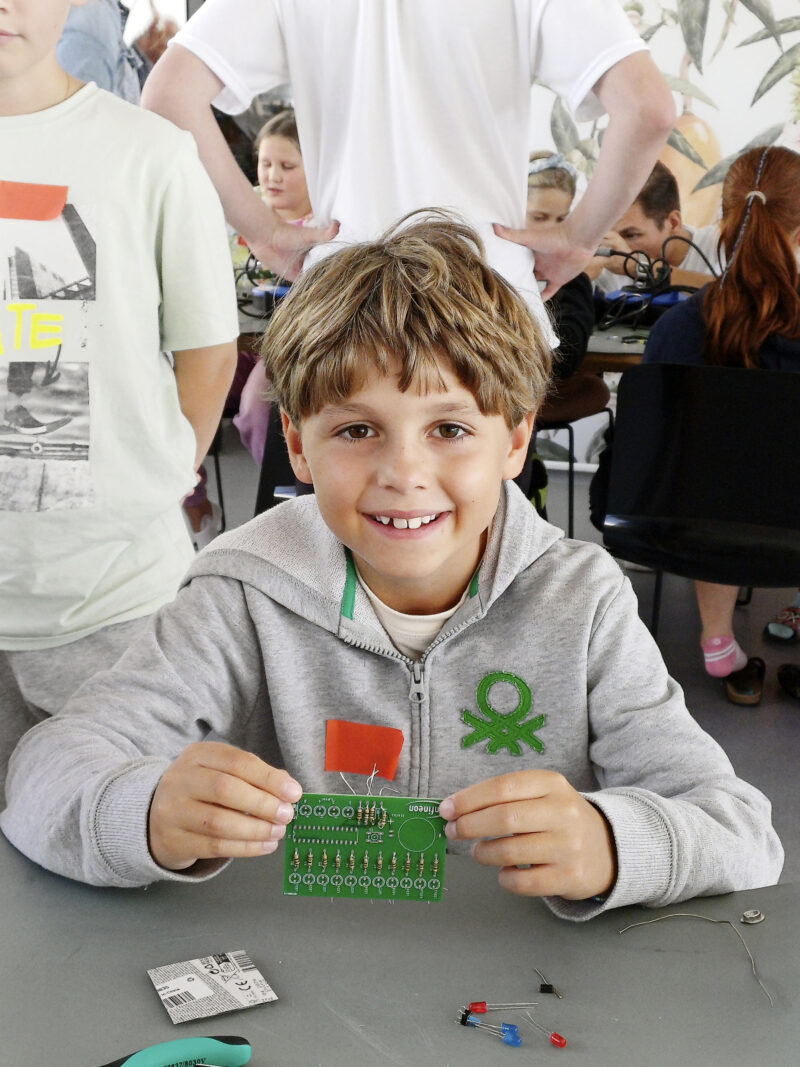 An jeweils fünf Tagen pro Woche wurde gemeinsam geforscht, gebaut, ausprobiert und entdeckt – sowohl in den Räumen des Educational Lab als auch im Freien. Auf dem Programm standen technisches und handwerkliches Erproben, Experimente und kreative Challenges, Mikroskopieren und Löten, das Eintauchen in die Welt des Programmierens sowie das spielerische Kennenlernen verschiedener Berufsbilder fernab von Geschlechterklischees. Die Kinder bauten, entdeckten und forschten in den verschiedenen Labs, erkundeten das Naturschutzgebiet Lendspitz-Maiernigg, arbeiteten nachhaltig mit Recyclingmaterialien, bastelten und übernahmen Verantwortung für ihre Projekte. Rückzugsmöglichkeiten wie eine Lese- und Spielecke boten Raum für freies Spiel und Erholung.