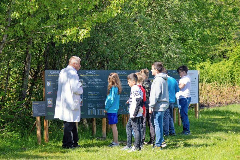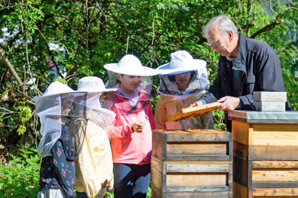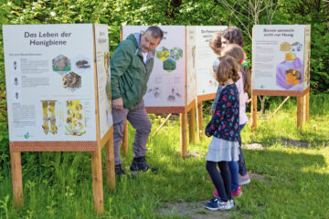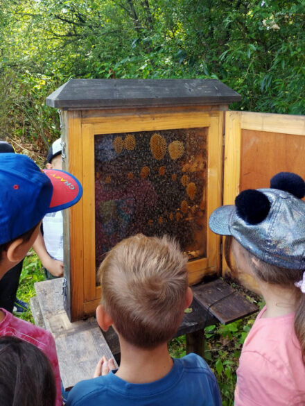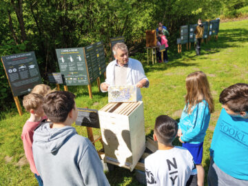 Der Bienenlehrpfad wird von vielen Schulen besucht. Die Schüler:innen bekommen nicht nur theoretisches Wissen vermittelt, sie haben auch die Möglichkeit, das Bienenvolk hautnah zu erleben. Sie erfahren außerdem, wie wichtig und wertvoll Bienen durch ihre Bestäubung von Pflanzen für eine blühende Umwelt und für uns Menschen sind. Umwelterziehung erfolgt durch unmittelbares Erleben – wir bringen die Natur zu den Kindern, wo sie heute meist fehlt.